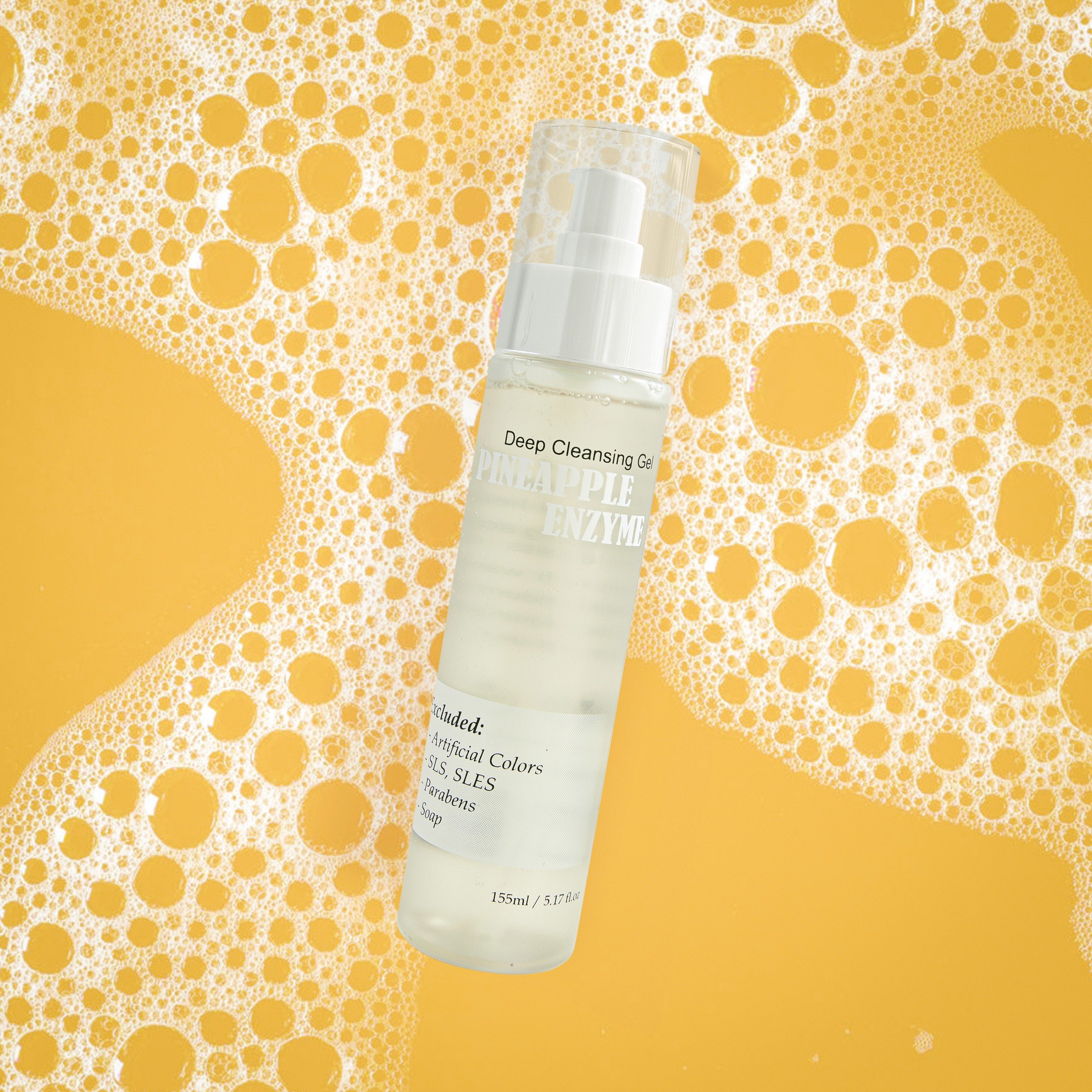 Gel rửa mặt men trái thơm giúp làm sạch bụi bẩn, lớp make up và tẩy da chết nhẹ nhàng theo cơ chế Enzyme sinh học chiết xuất từ men của trái thơm.